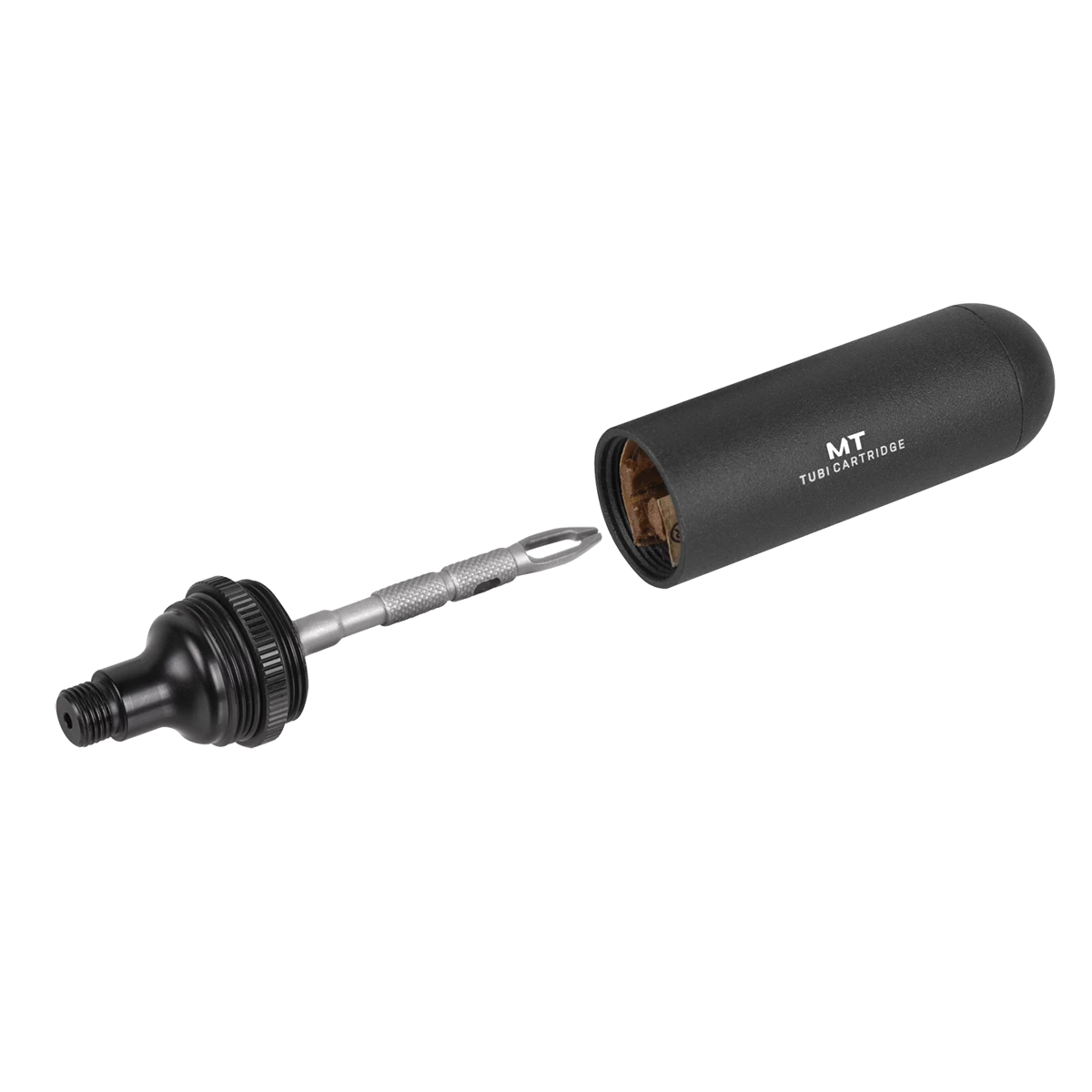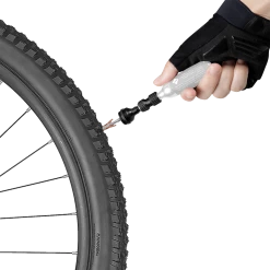 Patching and filling in one operation: The TubiCartridge Mt. from Topeak makes repairing tubeless tyres a matter of seconds. In combination with any CO2 inflator and cartridge, you can insert the tubeless patch into the damaged area and start immediately with the CO2 pressure filling. As soon as you have pulled out the plug piercer and removed the remains of the plug, the journey can continue.